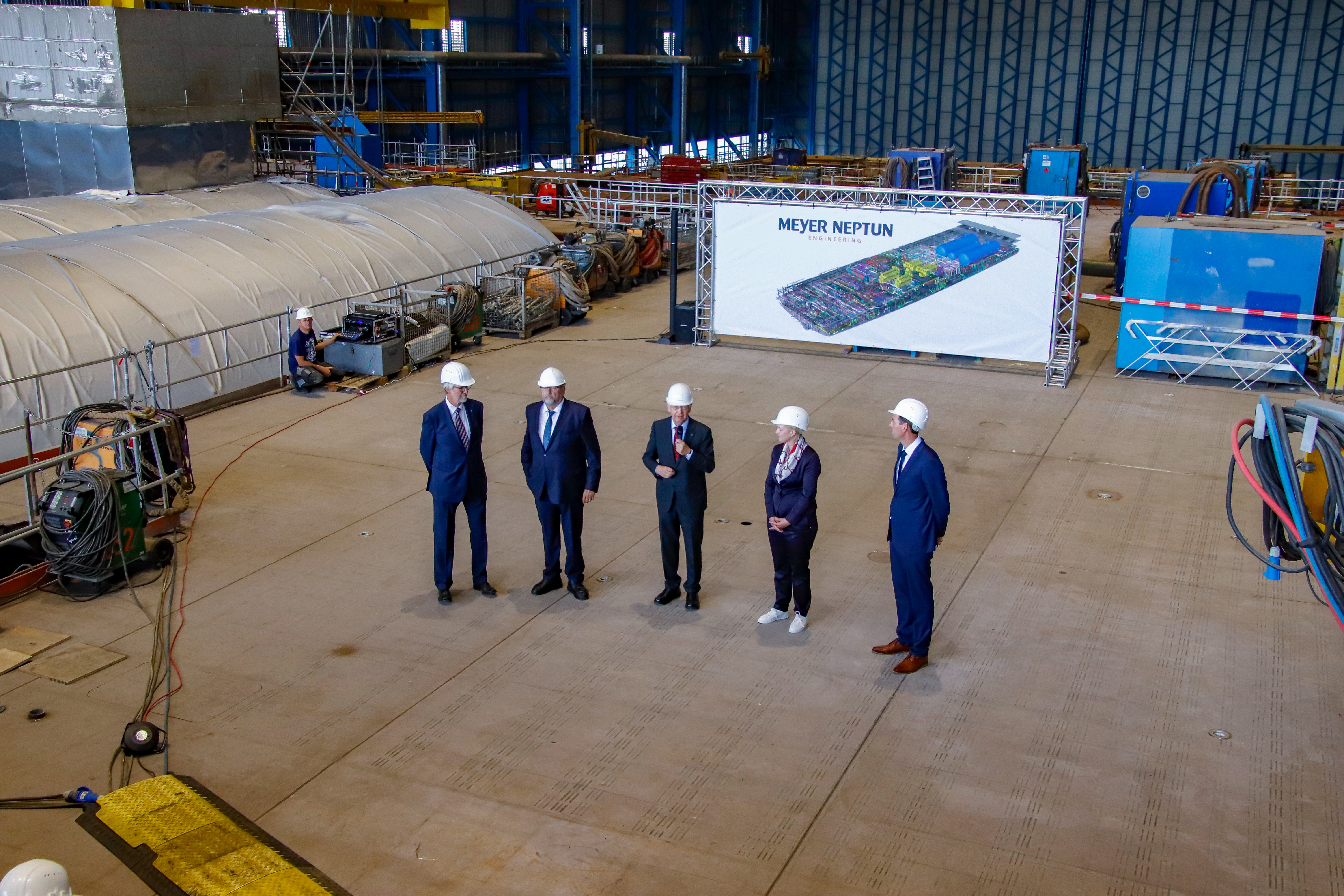 Das künftige Kompetenzzentrum in Rostock verbindet Arbeit an nachhaltigen Zukunftslösungen mit gleichzeitig sehr hoher Jobsicherheit. Trotz der weltweiten Corona-Krise ist es der Meyer Werft gelungen, sämtliche Aufträge zum Bau neuer Kreuzfahrtschiffe zu halten. Dazu kommt der Bau eines kleinen Kreuzfahrtschiffes mit LNG-Antrieb für den japanischen NYK-Konzern. Malte Poelmann: „Der einzige Neubauauftrag für ein Kreuzfahrtschiff, der weltweit vergeben wurde.“ Ende Juli erhielt die Werft den Auftrag für den Bau eines Appartementschiffes, die M/Y Njord, das zusätzlich zu einem LNG-Antrieb auch über eine Hybrid-Batterie-Anlage verfügt und ozeanografische Forschungseinrichtungen an Bord haben wird. In Kooperation mit der Lürssen Werft sollen zudem zwei Marine-Betriebsstoffversorger gebaut werden.