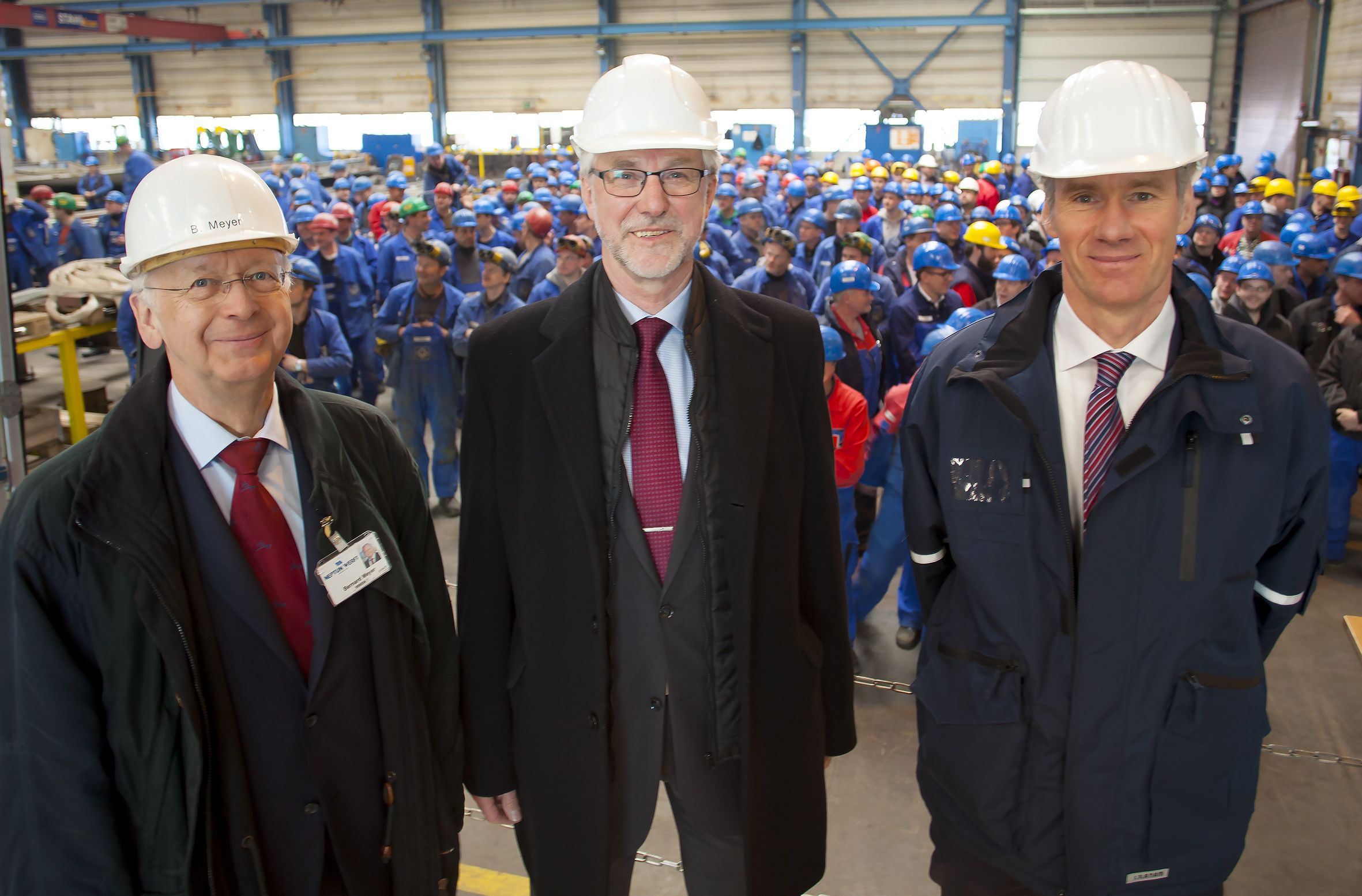 Bernard Meyer dankte Manfred Müller-Fahrenholz für seinen langjährigen Einsatz und die kontinuierliche Arbeit Neptun zu einem modernen und wettbewerbsfähigem Schiffbauunternehmen zu entwickeln. Die Werft ist in den letzten 15 Jahren zu einem führenden Spezialisten für Flusskreuzfahrtschiffe geworden. Die Neptun Werft spielt zudem eine wichtige Rolle in der Zusammenarbeit mit den beiden anderen Werften der Gruppe in Papenburg und Turku.